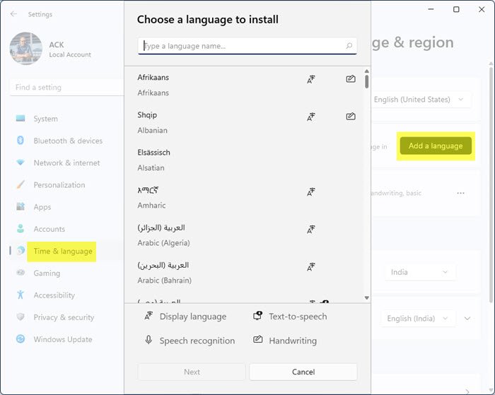 Add or Install Language on Windows 11/10